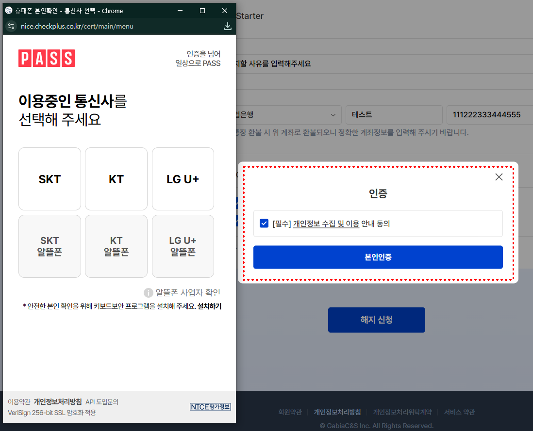 본인인증 진행 합니다.