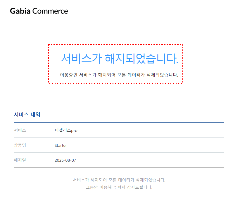 서비스 해지가 완료 되면 메일로 안내 드립니다.