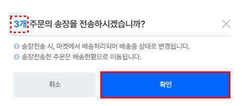 ④ 주문건 개수 확인 후 [확인] 선택합니다.