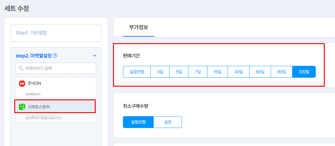 ③ [스마트스토어] 선택 - [판매기간] 확인합니다.