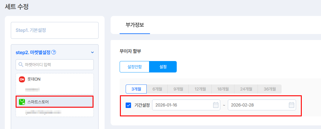 세트 내 무이자할부 기간을 판매기간에 포함되도록 수정 후 등록 부탁드립니다.