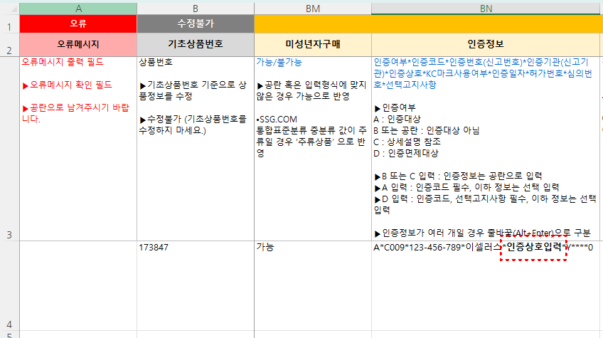 ② 엑셀 파일 내 [인증정보] 부분에 [인증상호]를 입력 합니다.