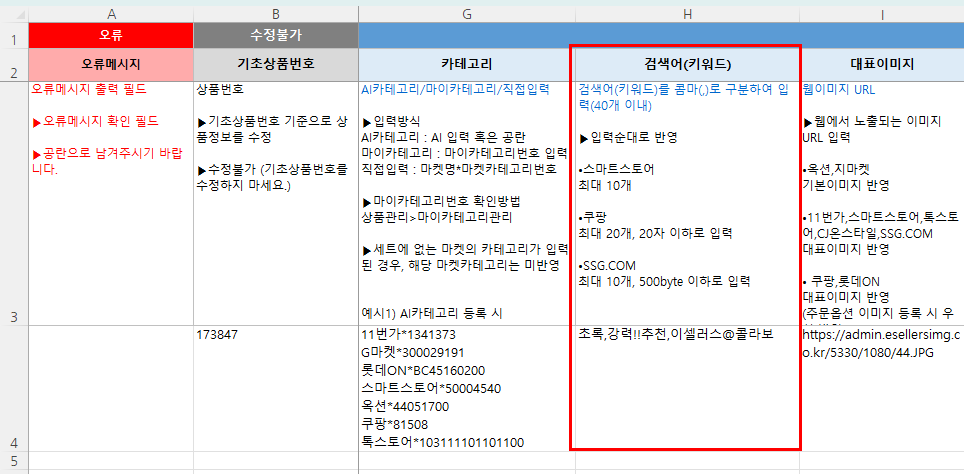 입력한 데이터가 유효하지 않습니다. - 판매자입력태그 항목에 허용 되지 않는 문자가 있습니다.