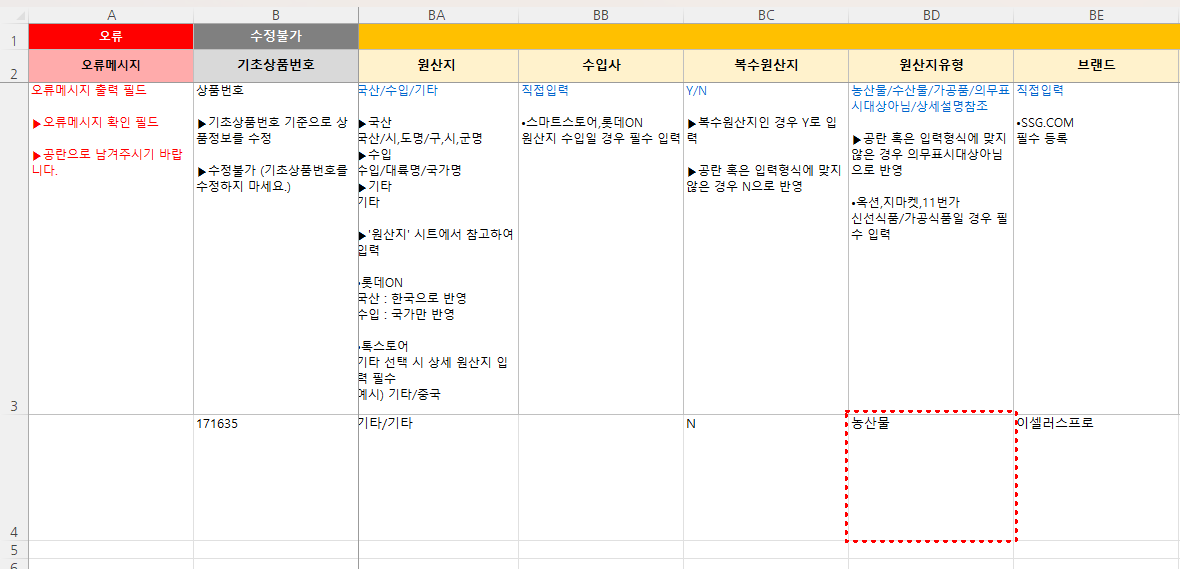 ② 엑셀 파일 내 `원산지 유형` 수정 합니다.