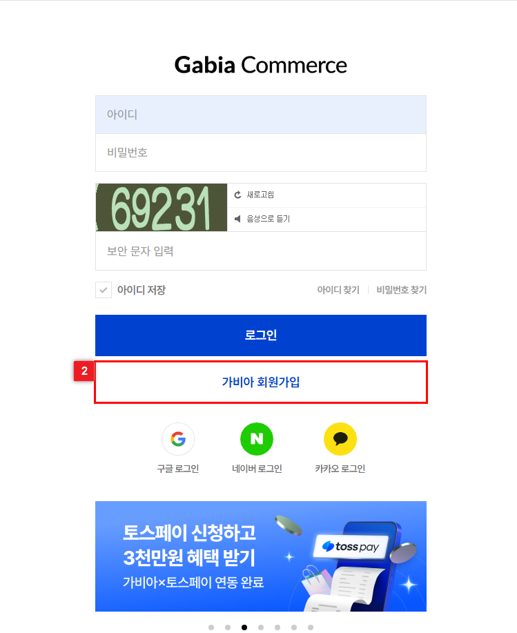 가비아커머스 홈페이지(gabiacns.com)에서 회원가입을 진행합니다.