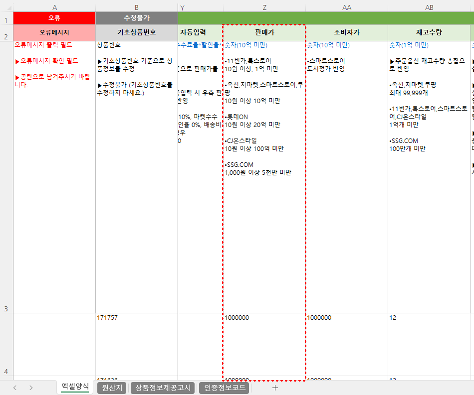 ② 엑셀 파일 내 '판매가' 수정 합니다.