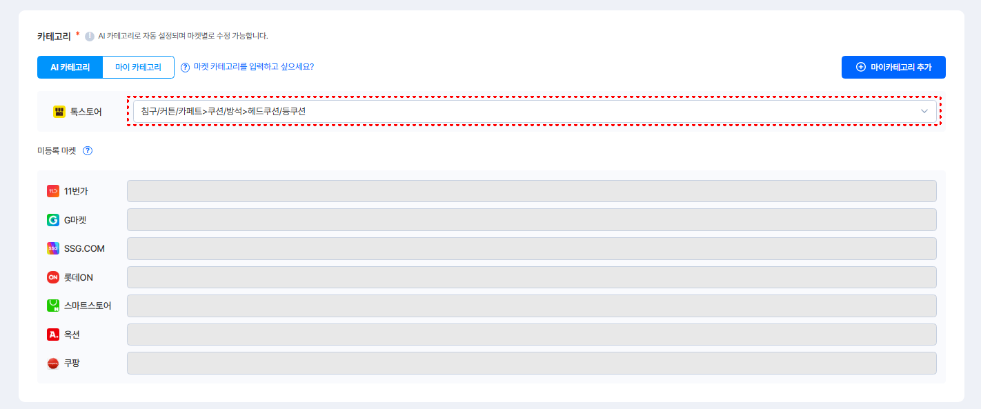 - 톡스토어 사이트 정책 상 상품명, 카테고리, 판매가가 동일한 상품은 등록 불가