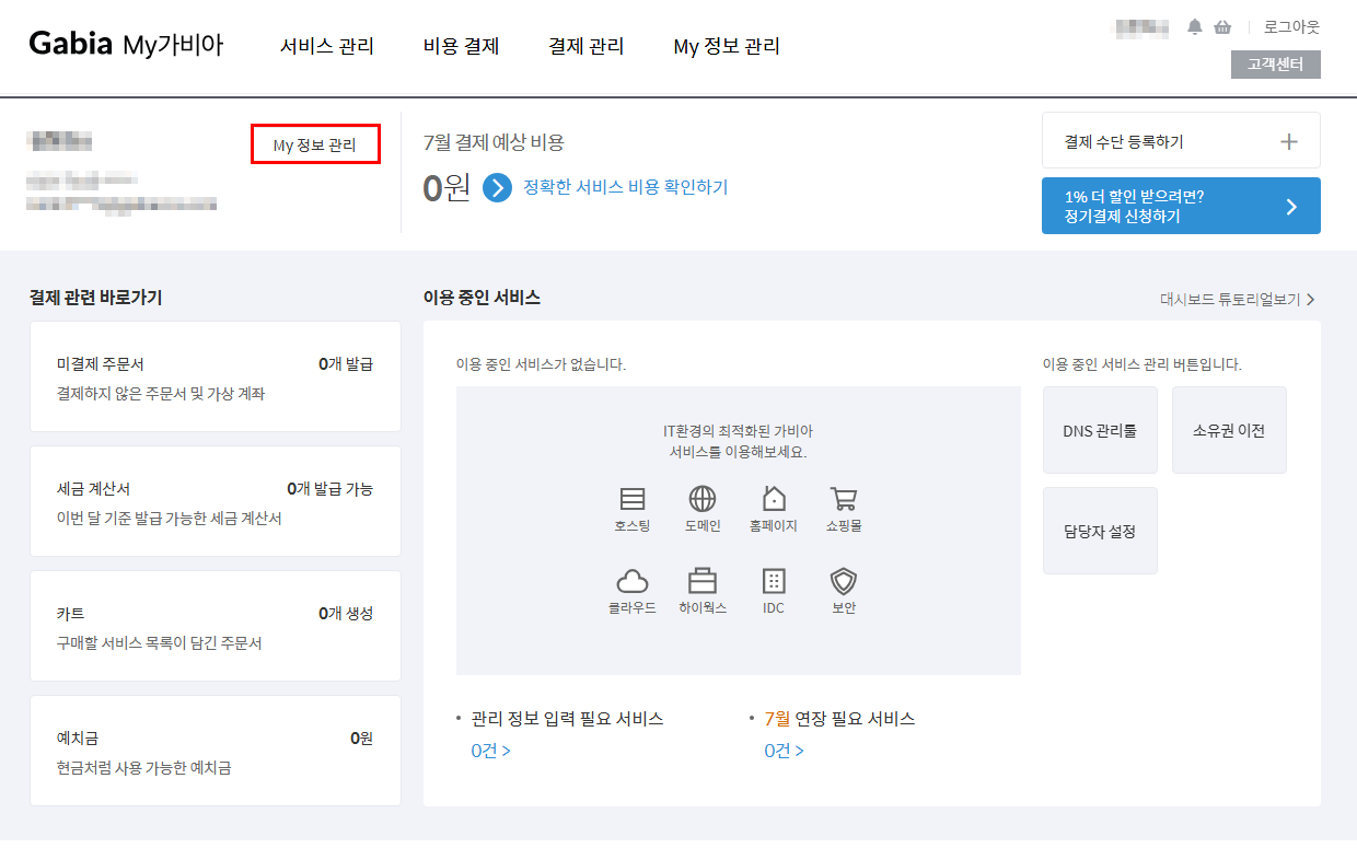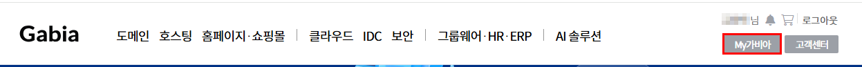 1. 가비아 홈페이지(https://www.gabia.com/)에 로그인합니다.