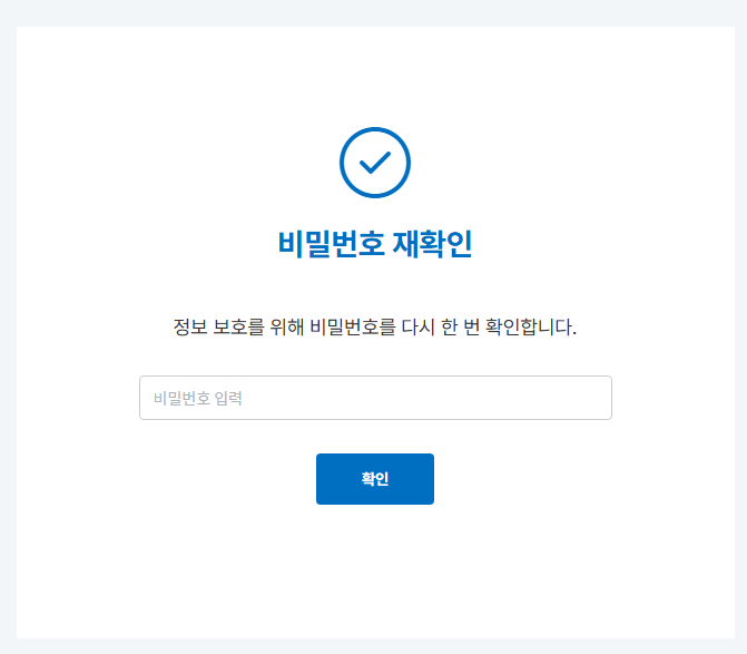 5. 비밀번호 재확인에 현재 가비아 비밀번호를 입력 후 [확인]을 클릭합니다.